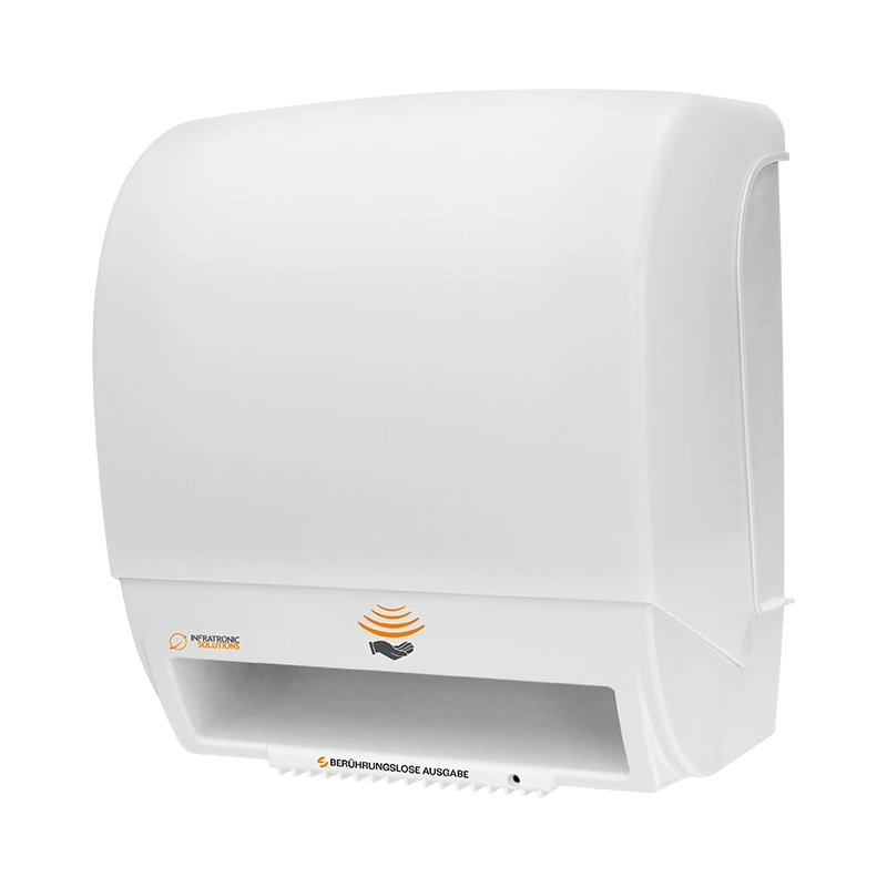 Führt der Anwender die Hand von unten zum sensorgesteurten Papierrollenspender. bekommt dieser kontaktlos ein sauberes Stück Handtuchpapier von ca. 30cm in die Hand ausgeben.